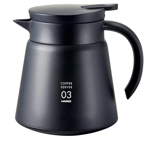 Découvrez la carafe isotherme Hario V60 noire en inox. Contenance de 75 cl (2 à 6 tasses). En acier inoxydable double paroi pour une conservation d’une heure au chaud. 100% hermétique pour une meilleure conservation de la chaleur. Compatible dripper Hario.
