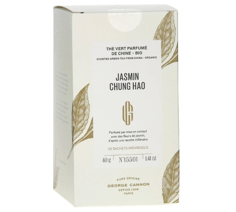 Laissez vous emporter par les saveurs fleuries de ce thé vert aux notes de jasmin. Ce thé a été réalisé dans la recette traditionnelle, les feuilles de thé vert ont été séchées avec les fleurs de jasmin. Un doux parfum qui enivra vos papilles. Conditionnement : boîte de 20 sachets.